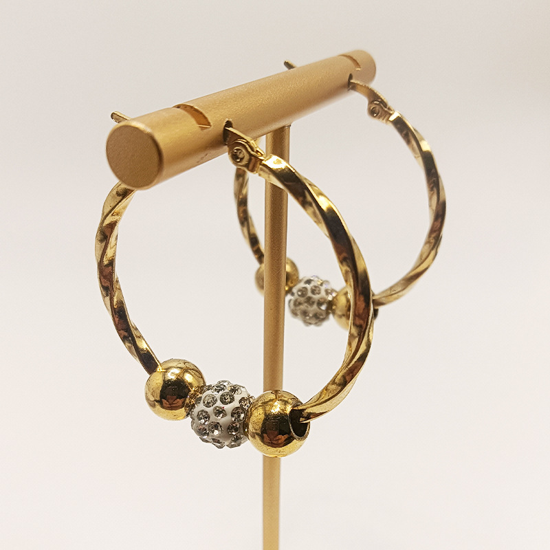 White diamond inlaid stainless steel electroplating 18k gold plating