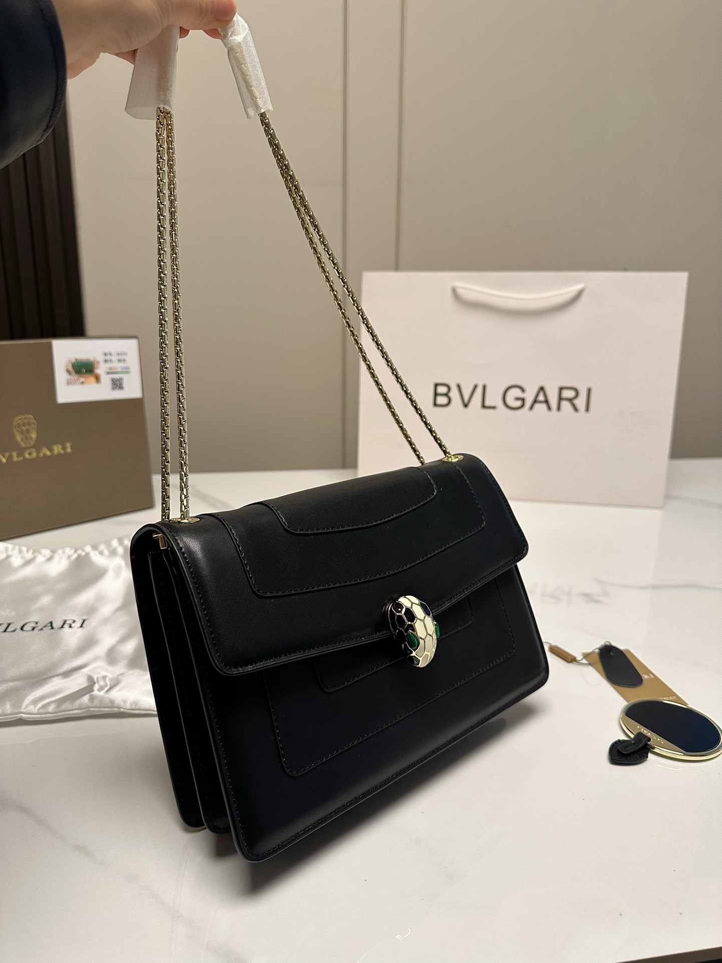 The SERPENTI FOREVER series small crossbody bag, made of black calfskin, reinterprets timeless charm with exquisite colors and materials.