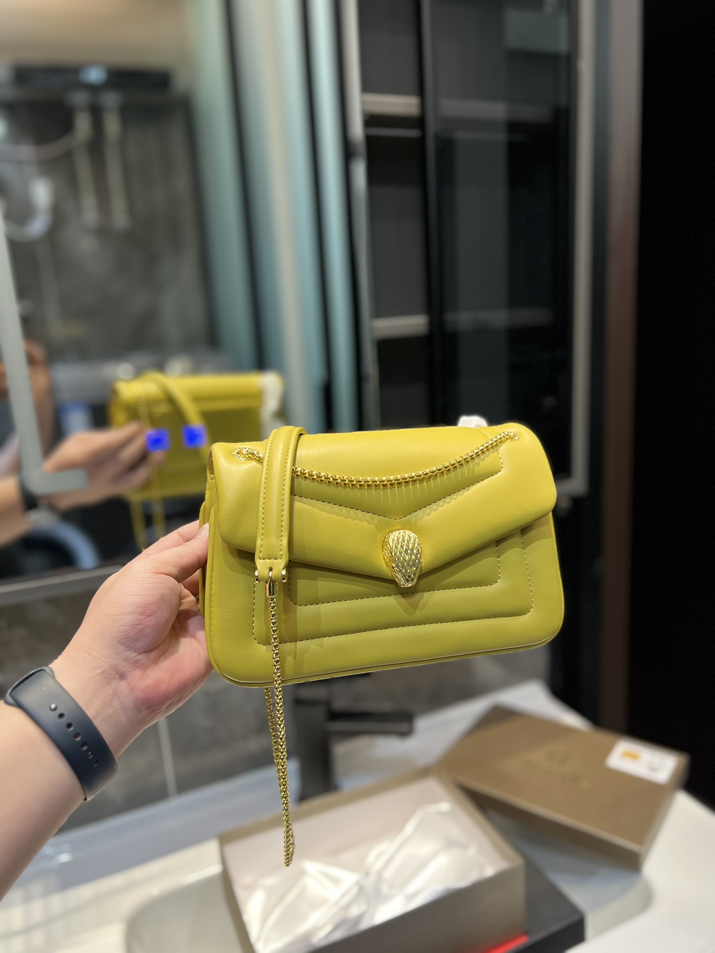 The small shoulder bag of the SERPENTI REVERSE series cleverly plays with bold proportions and eye-catching shapes, and reinterprets the classic features of the series with a charming puffy design.