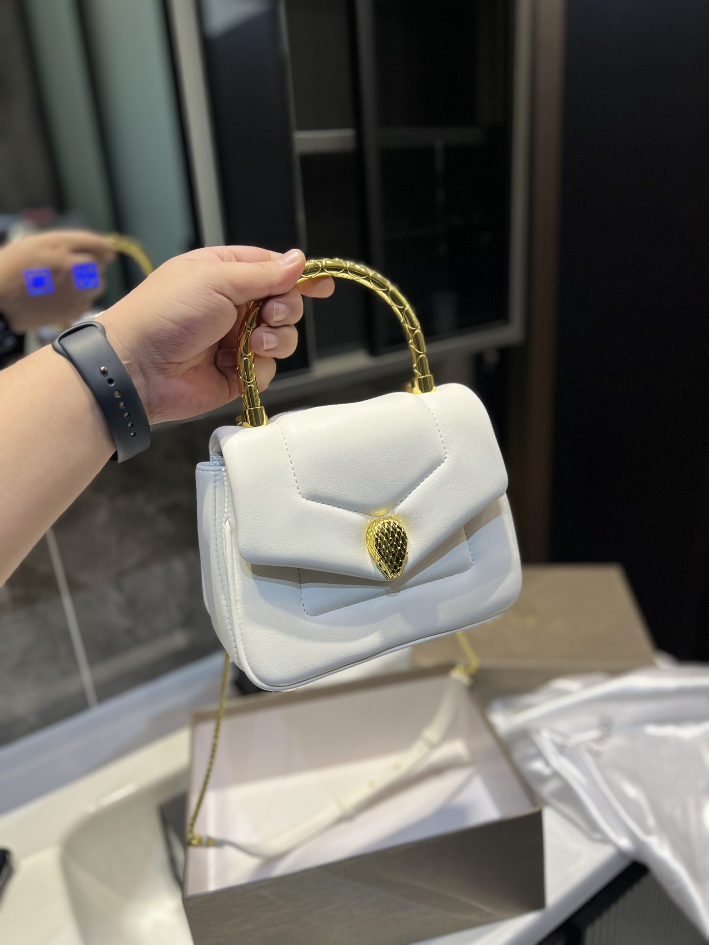 The SERPENTI REVERSE small handbag plays with bold proportions and striking shapes, reinterpreting the series' classic features in a charming puffy design.