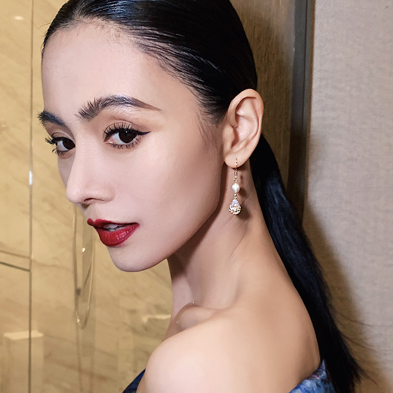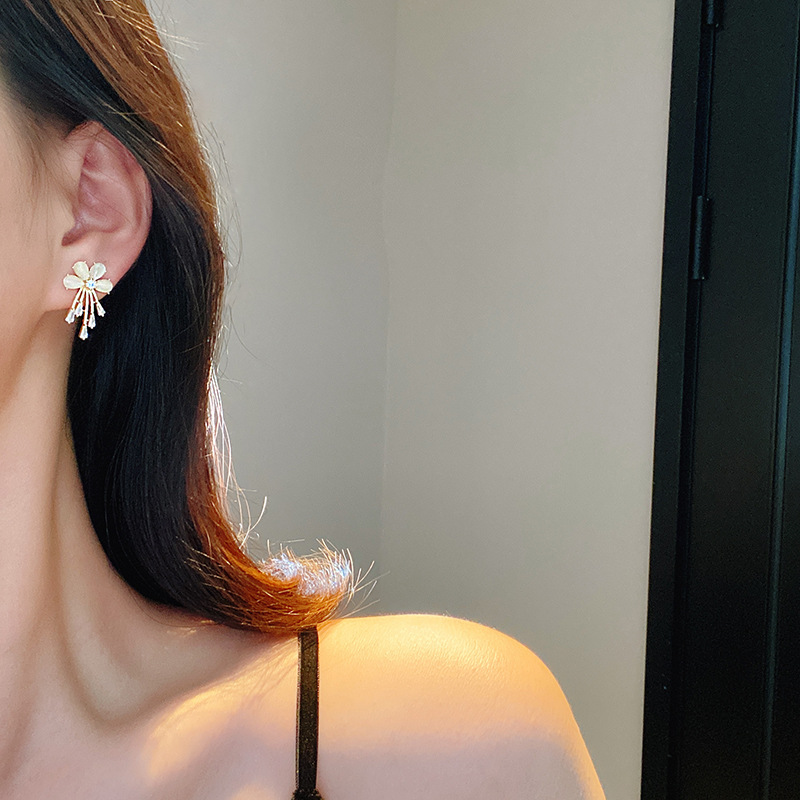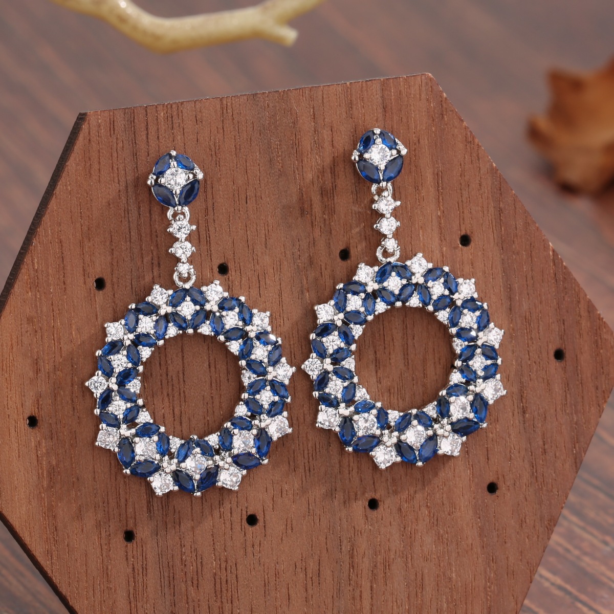 Cross-border super flash inlaid stone blue flower silver needle earrings