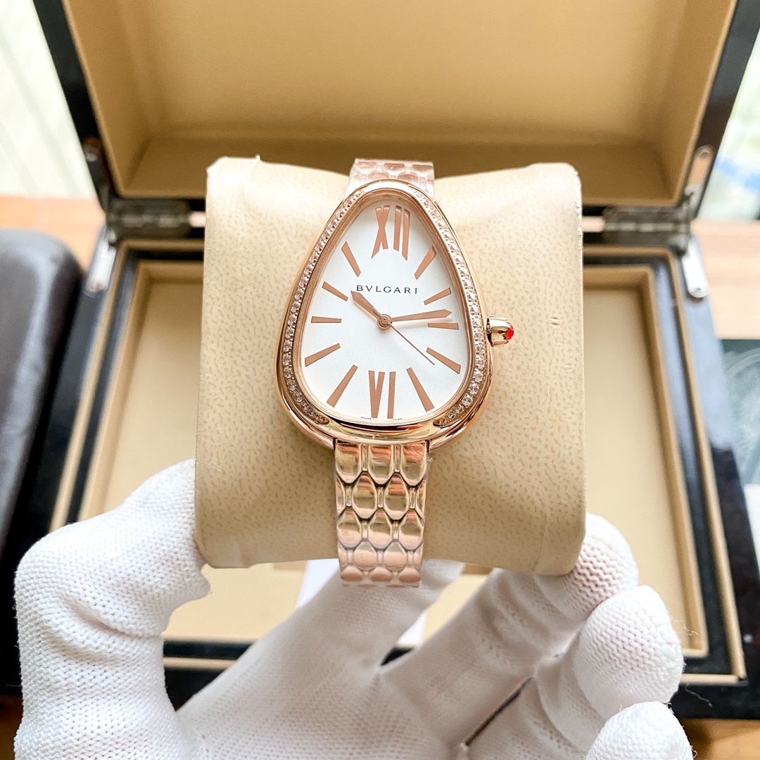 SERPENTI SEDUTTORI gilded snake shadow watch, equipped with quartz movement, 33mm diameter 18K rose gold case, 18K rose gold bezel set with diamonds