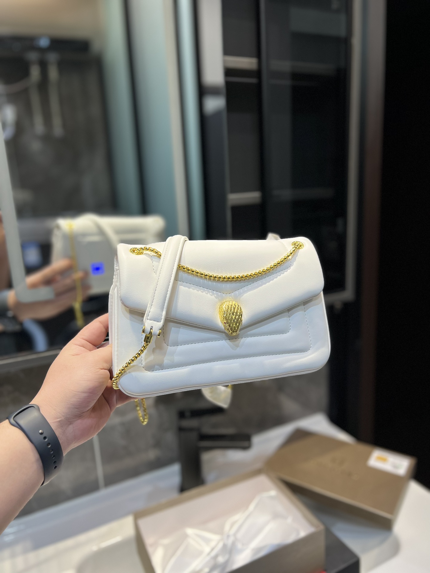 The small shoulder bag of the SERPENTI REVERSE series cleverly plays with bold proportions and eye-catching shapes, and reinterprets the classic features of the series with a charming puffy design.