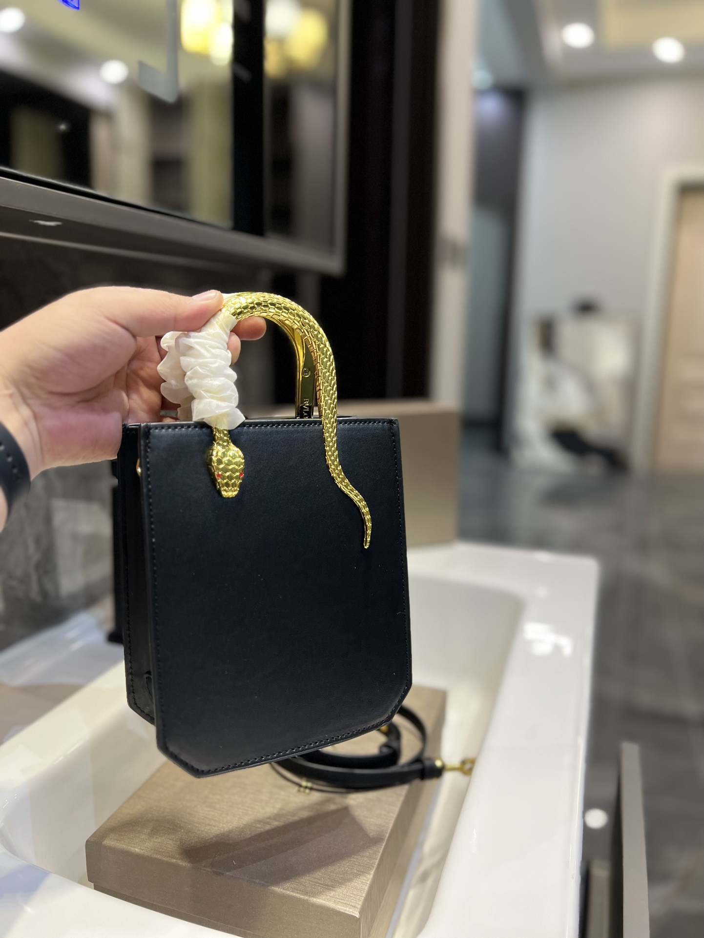 The SERPENTINE series mini tote bag is made of soft and wear-resistant black city calfskin, and combines the crisp vertical shape with the details of jewelry elements.